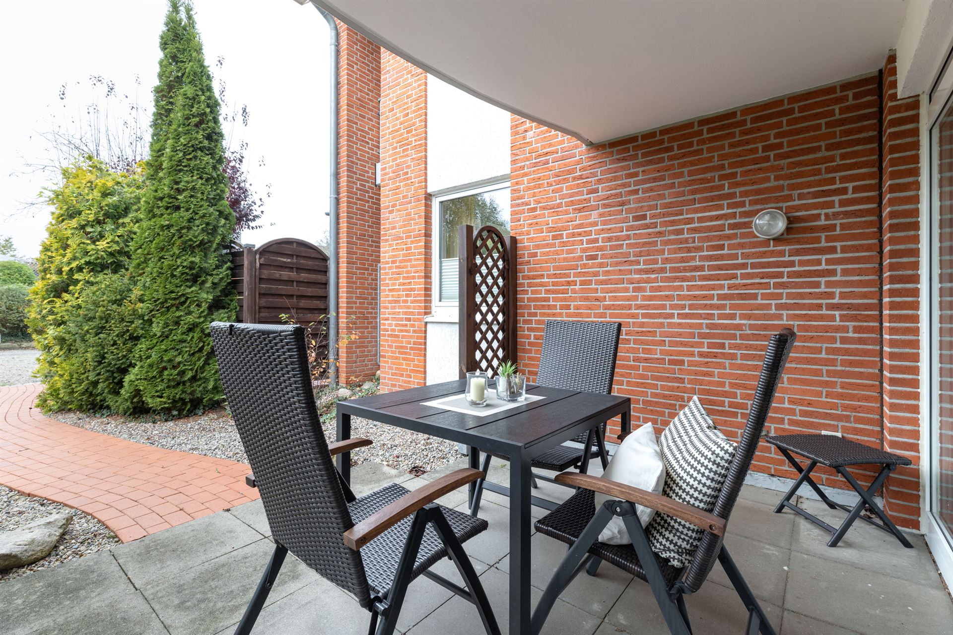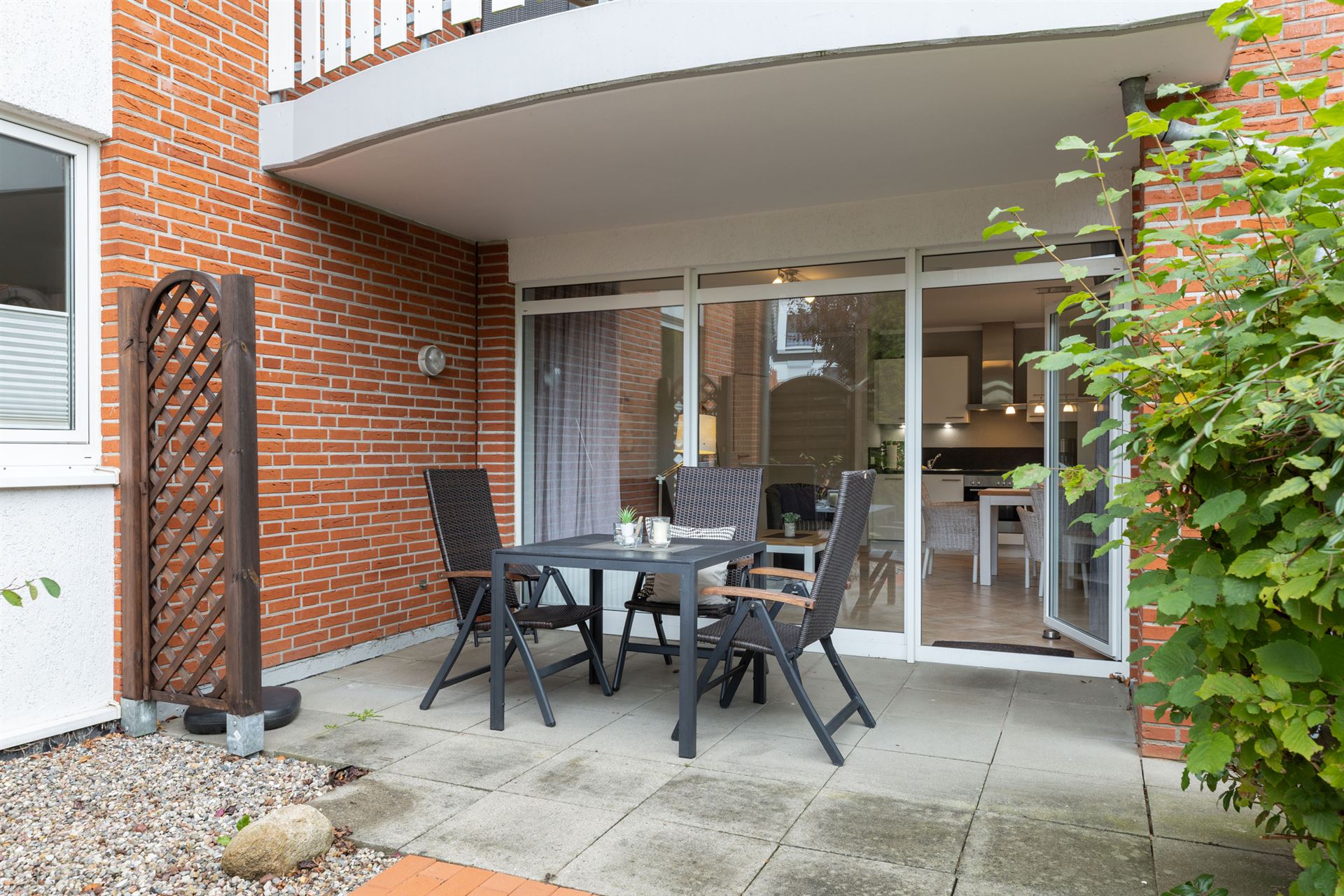 Harmonie und Urlaubsfreude strahlt dieses Apartment aus. Vom Wohnraum aus genießen Sie den Blick ins Grüne. Die große Terrasse mit dem Gartenstück zur Süd- und Westseite lädt zum Sonnen und Faulenzen ein.
